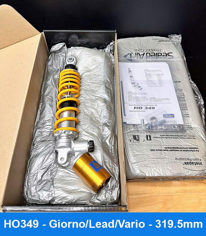 - Phuộc Ohlins là sản phẩm cao cấp với nhiều hiệu năng vượt trội và chất lượng đỉnh cao. Sản phẩm giúp xe vận hành êm ái, dễ tùy chỉnh theo ý muốn người dùng về tải trọng và cảm giác. Phuộc dùng chất liệu hợp kim cao cấp được sử dụng với công nghệ chế tạo hiện đại. Sản phẩm mang thương hiệu từ Thụy Điển và được sản xuất tại Thái Lan. Ohlins HO349 là mã phuộc Bình Dầu Dưới gắn cho xe Giorno/Lead/Vario,….