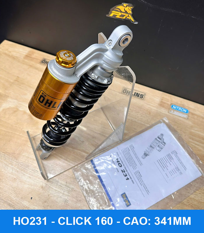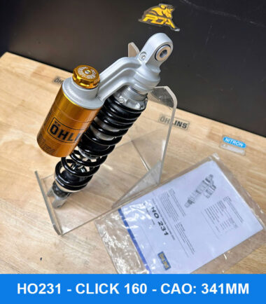 - Phuộc Ohlins là sản phẩm cao cấp với nhiều hiệu năng vượt trội và chất lượng đỉnh cao. Sản phẩm giúp xe vận hành êm ái, dễ tùy chỉnh theo ý muốn người dùng về tải trọng và cảm giác. Phuộc dùng chất liệu hợp kim cao cấp được sử dụng với công nghệ chế tạo hiện đại. Sản phẩm mang thương hiệu từ Thụy Điển và được sản xuất tại Thái Lan. Ohlins HO231 là mã phuộc Bình Dầu Trên gắn cho xe Vario/Click.