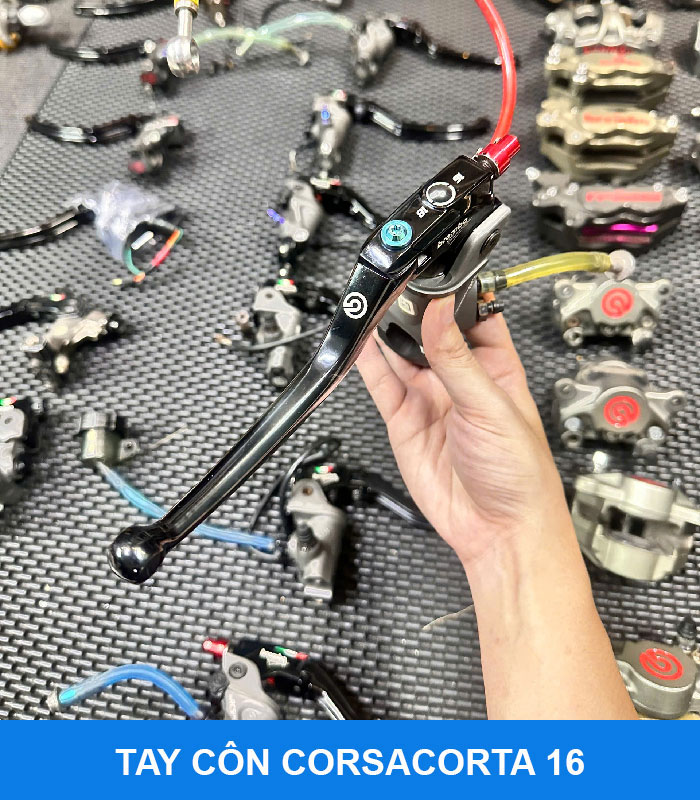 Tay Côn Corsacorta 16 được sản xuất bởi hãng Brembo nổi tiếng thế giới về hệ thống thắng xe cao cấp. Sản phẩm được chế tạo bằng hợp kim siêu bền. Chất lượng tuyệt hảo với độ thẩm mỹ cao.